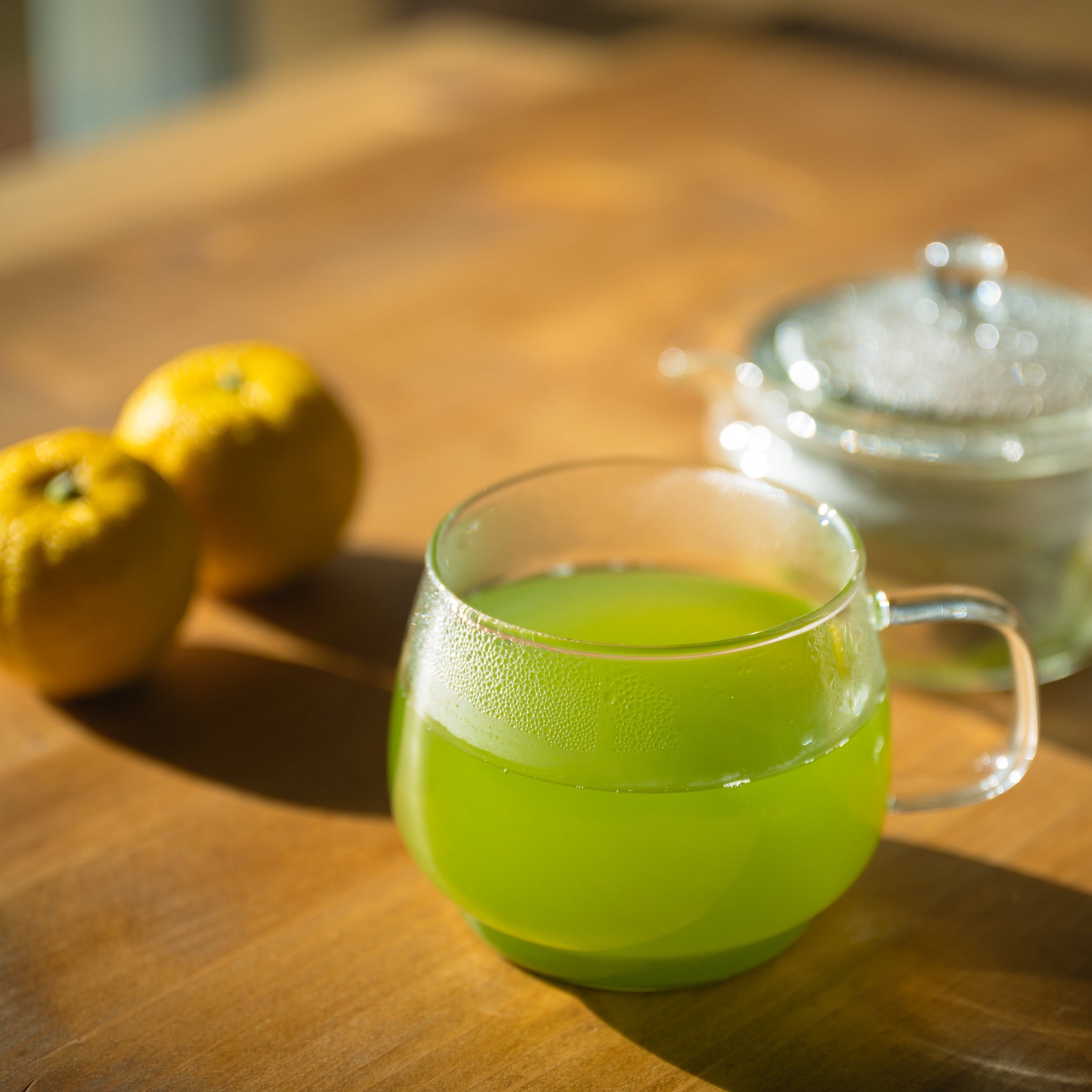 Yuzu is distinct from lemons, limes, or any other Western citrus fruit. What results from brewing this tea is a harmony of flavors. The kukicha used has a mild taste that is slightly bitter, sweet, and astringent. The matcha provides a touch of sweetness and umami mouth feel. The flavor and aroma of the yuzu bring the whole experience together, gently awakening the drinker and suffusing the surrounding air with a slightly sweet, citrus aroma.