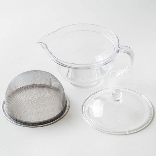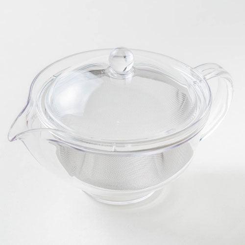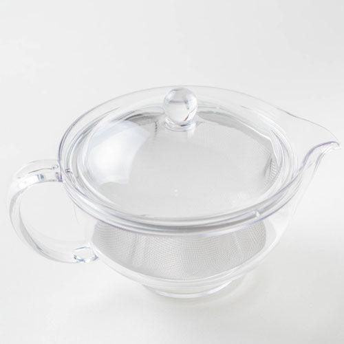 This clear teapot is made of Tritan™ plastic. Tritan plastic is light, BPA free, durable, beautiful and dishwasher-safe. The metal basket is convenient for brewing and cleaning.