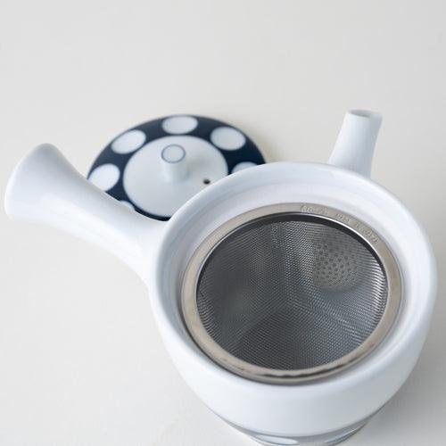 Mizutama means "polka dots" in Japanese. Polka dots are a traditional design that you will find on many teapots in older restaurants. Our Mizutama Kyusu is a modernized version that is smaller and cuter than the traditional one. The kyusu comes with an additional metal basket inside, but does feature the classic debeso (half-sphere) filter.