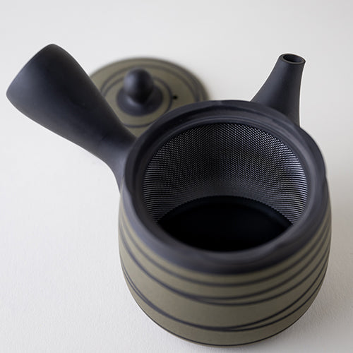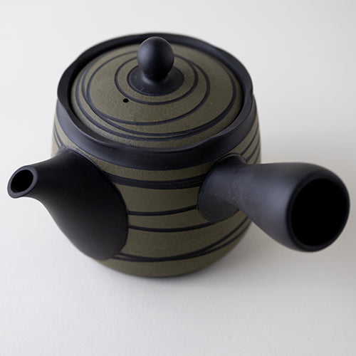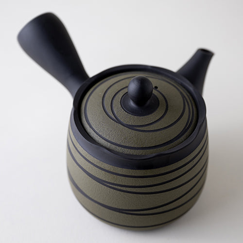 The spiral pattern, known as "shima", is created by making cuts on the surface of this kyusu. Since they are all made by hand, each one is truly a unique, one-of-a-kind kyusu.