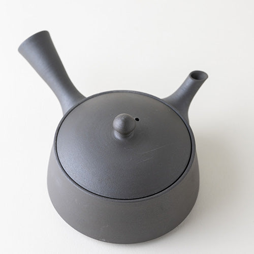 Tomohiro Hiranaga Kyusu is completely unglazed, and its simplicity makes its flat shape stand out. In fact, it is very comfortable in the hand and easy to use.